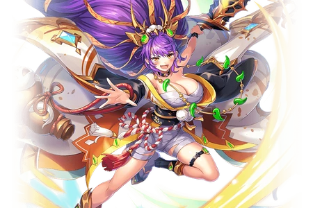 | "Susanoo is still in the process of mental growth. She is rude, violent, and a heavy drinker. But many people love her cheerfulness." | |||