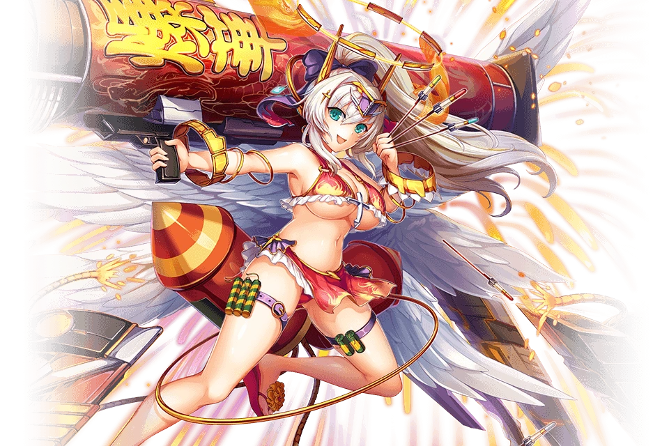 | "Metatron has attached fireworks all over her body. Using her newly learned Fire magic, she launches these fireworks as missiles." | |||