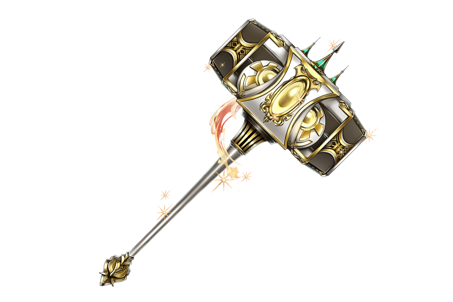 | "Though it appears broken, this magical hammer has breathtaking power. It destroys itself in order to crush enemies but can be restored by infusing it with magic." | |||