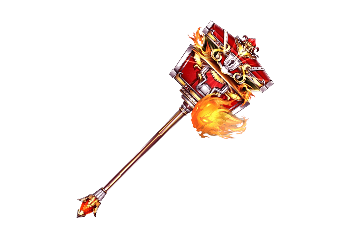 | "A hammer modified forcefully using a treasure chest containing a flame spirit. If you ask, the foul-mouthed spirit may grant you power." | |||