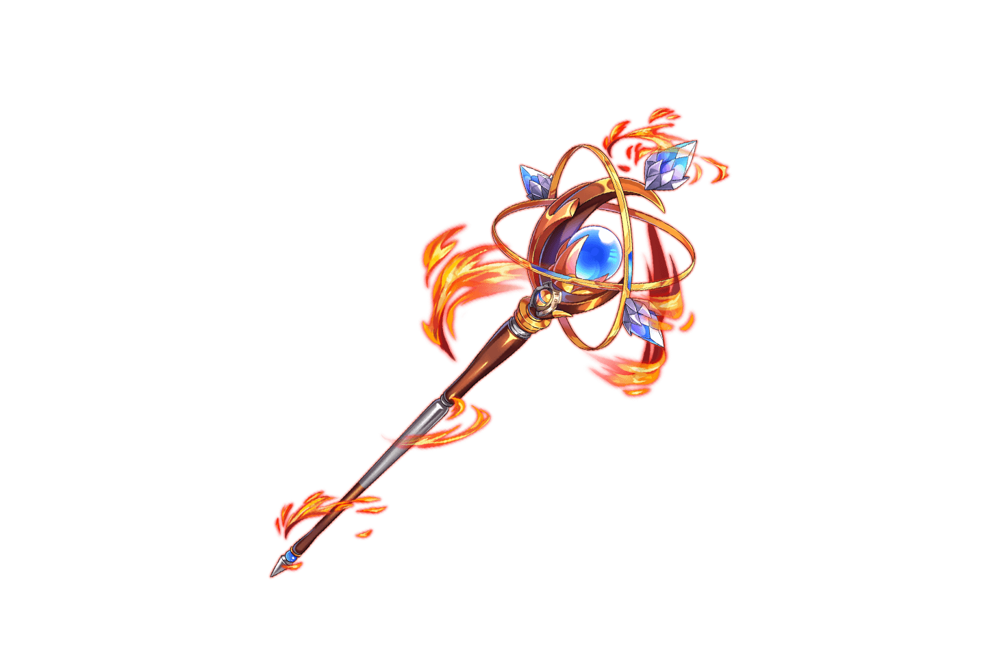 | "Through the power passed on by Eve, Alyssa’s staff gained the powers of a Kamihime. The magic channeled by the staff turns into raging flames that incinerate any opponents." | |||