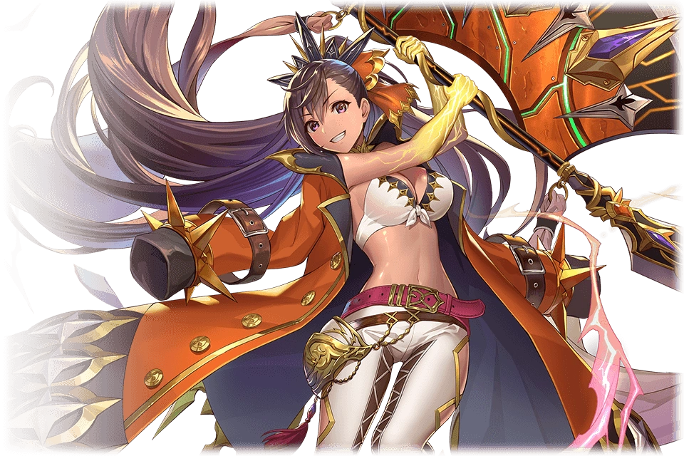 | "A Kamihime wielding a huge axe equipped with a mechanism that amplifies magic power. The axe's function gives her a lot of power, but it exhausts her magic." | |||