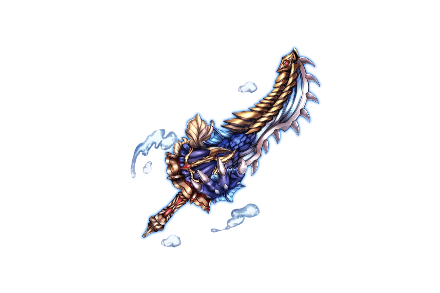 | "A sword made with the tough material of Rahab. It carries the magic of water and can level buildings in one fell swoop." | |||