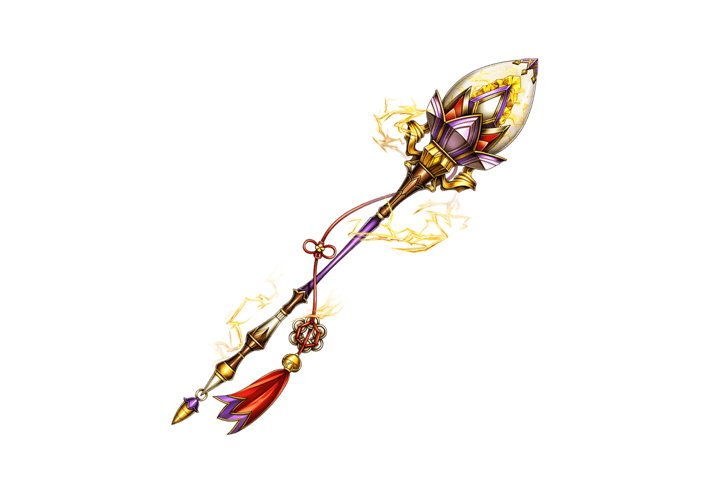 | "Wand adorned with a thunder gem said to been wielded by a famous hermit. It can perform both short and long range attacks to befuddle the enemy." | |||