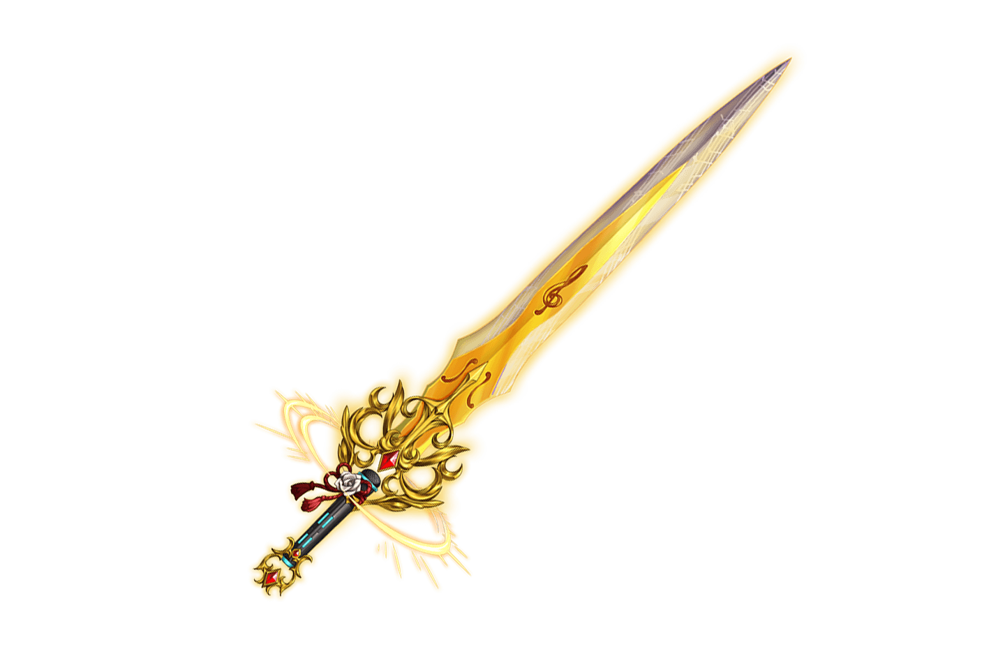 | "This sword's golden blade is miraculously sharp only while the wielder is singing. If the wielder dances whilst singing, its power is further enhanced." | |||