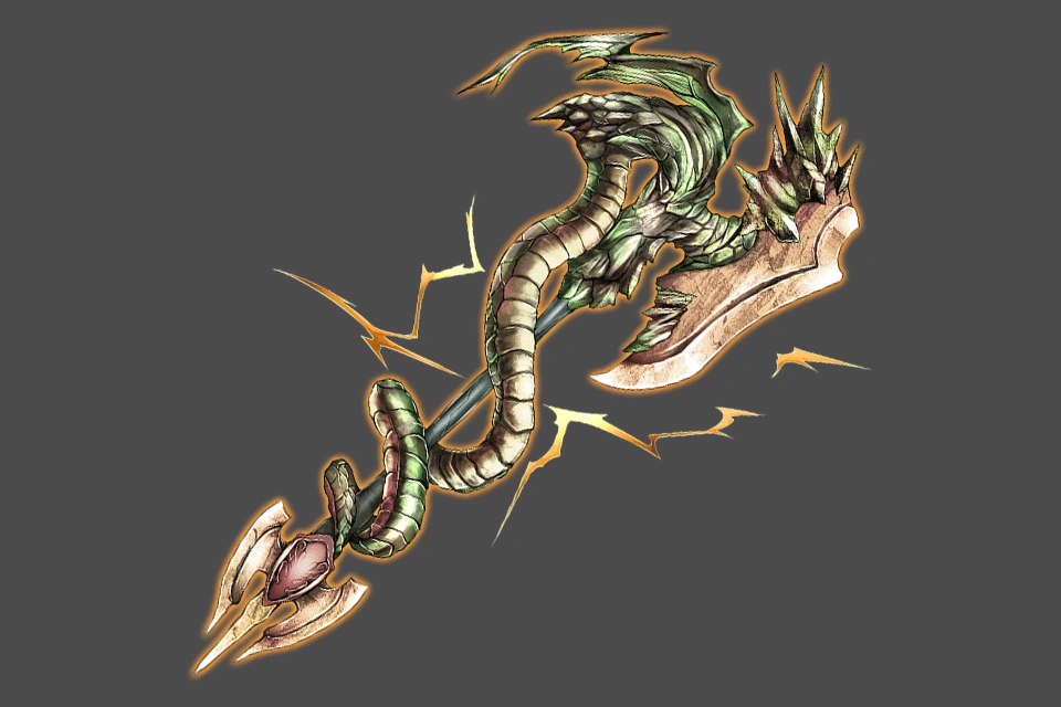 | "An axe containing the force of world-destroying storms. Those dealt its blow experience a cataclysmic [catastrophic] shock." | |||