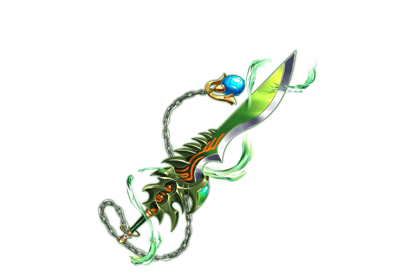 | "Tornado sword whose wind blade slashes and creates a barrier. It responds to strong ties and will, granting the power to protect your friends." | |||