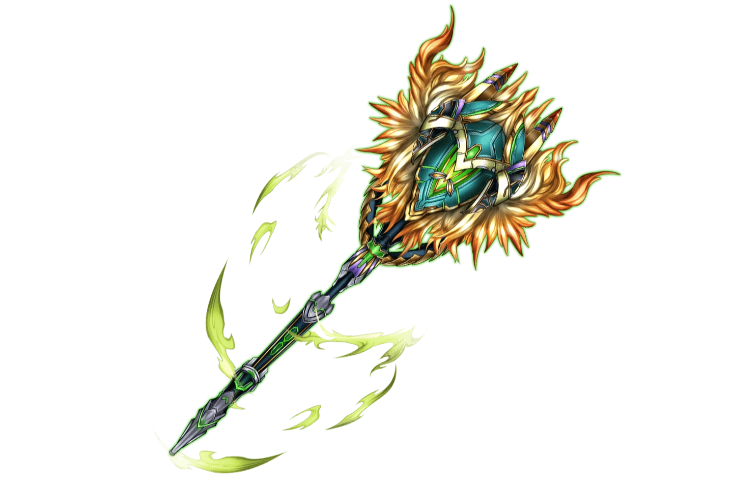 | "A staff releasing nanomachines with opposite forces: destructive and healing. It creates a group of nanomachines resembling a huge tornado." | |||
