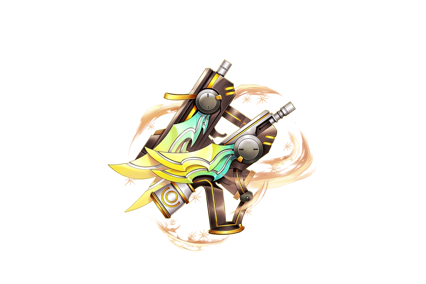 | "Pair of ray guns that help protect and guide people. In addition to emitting high-powered rays, they can also a build a wide-range defensive barrier." | |||